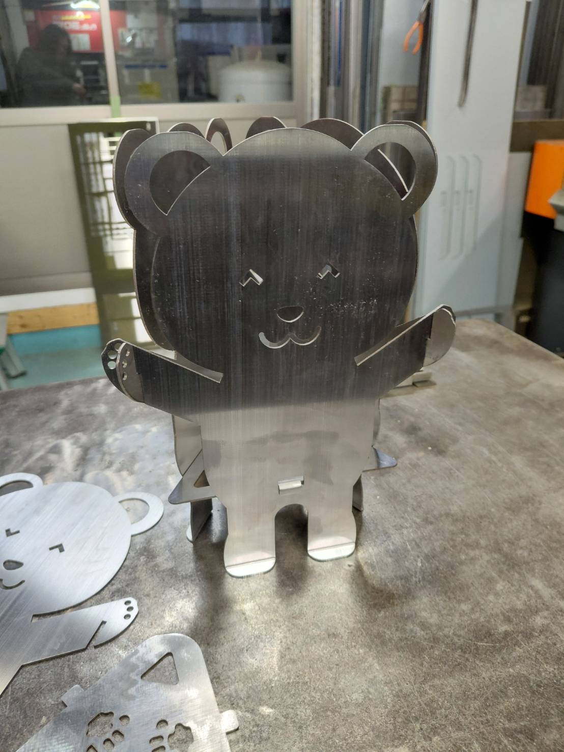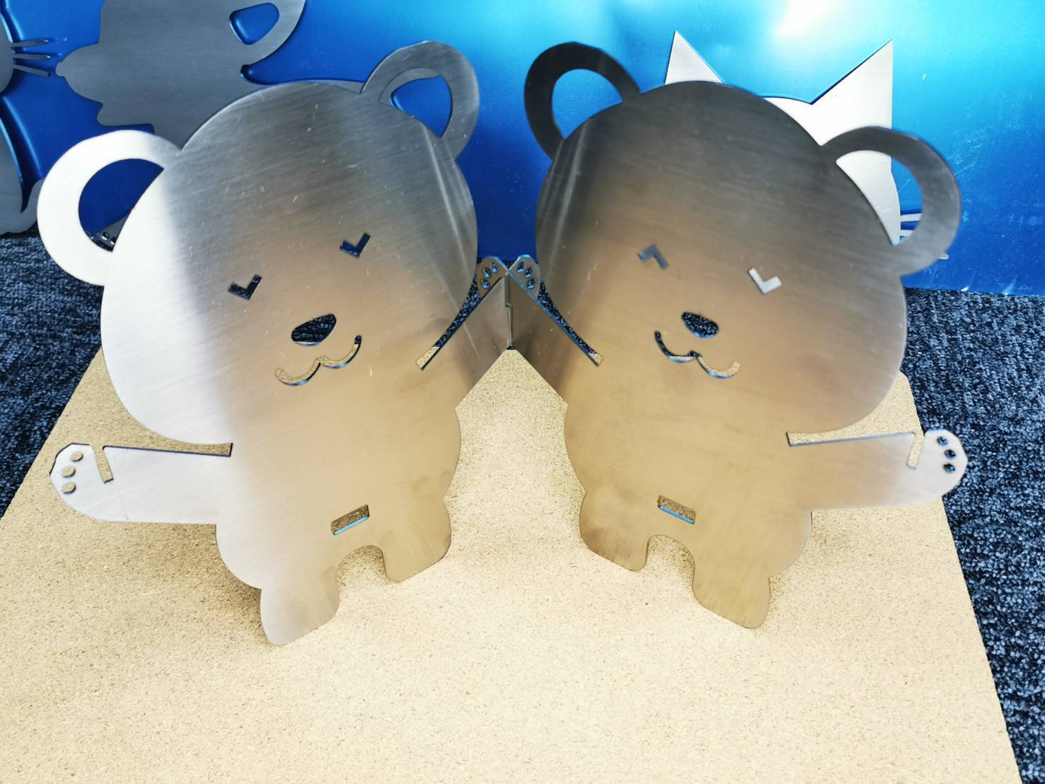 ヘアライン使用の材料に 足先に曲げ加工を加えて安定性向上